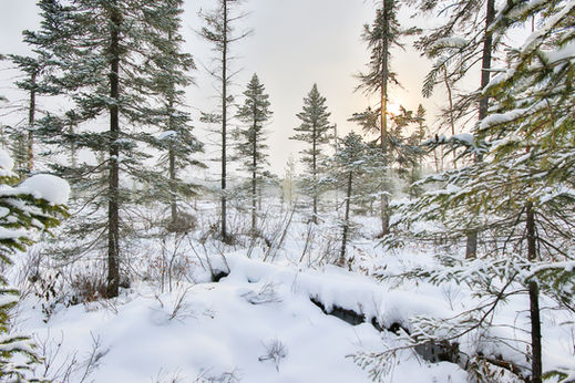 One last place to visit during winter is Algonquin Provincial Park. In addition to be able to go dog sledding, you'll also easily observe Gray jays, Evening grosbeaks, or Pine martins. Boreal landscapes will also be at their best with the forest covered in snow.